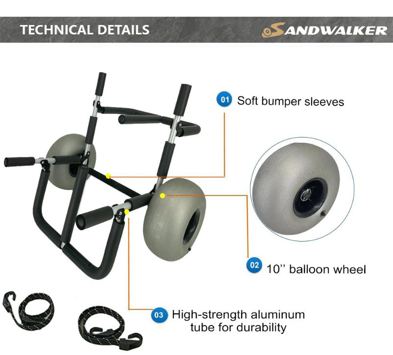 Dank seines einzigartigen Designs kann es problemlos zwei SUP-Boards gleichzeitig transportieren und ist somit die ideale Wahl für Familien oder Gruppen von Freunden, die gerne gemeinsam paddeln. Der Trolley eignet sich auch hervorragend zum Transport von zwei Surfbrettern und stellt sicher, dass Sie alles haben, was Sie für einen unterhaltsamen Tag am Strand benötigen.